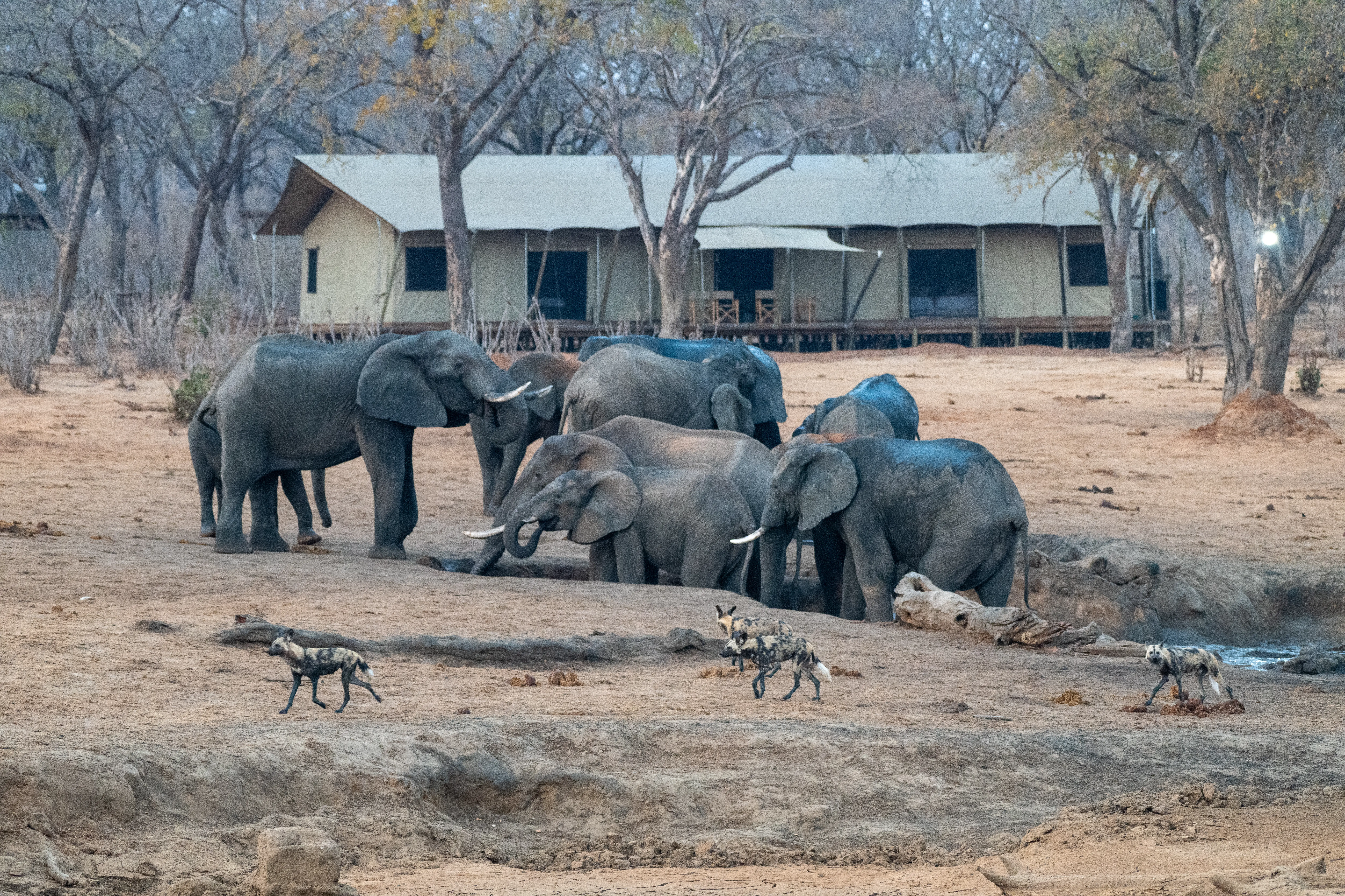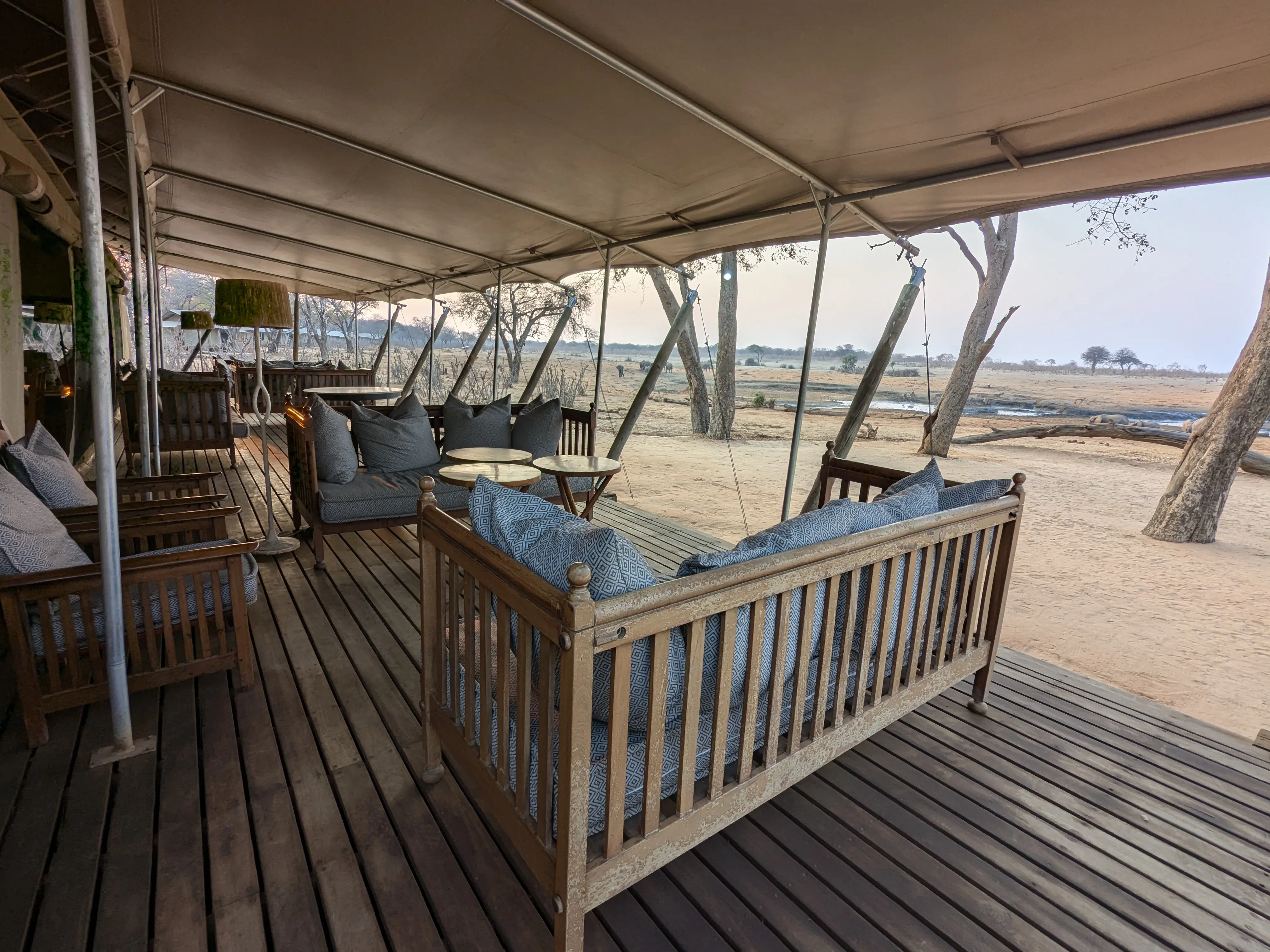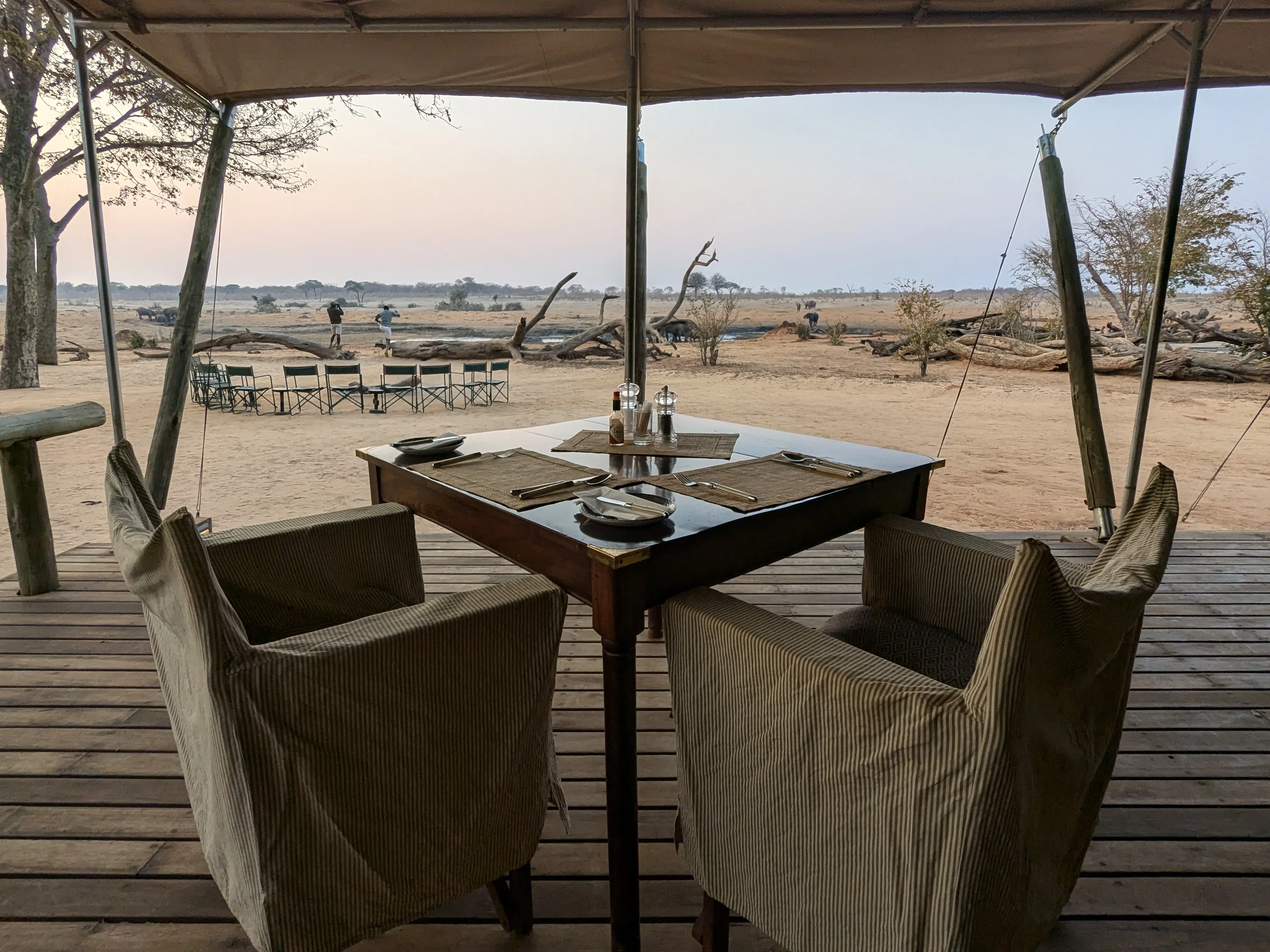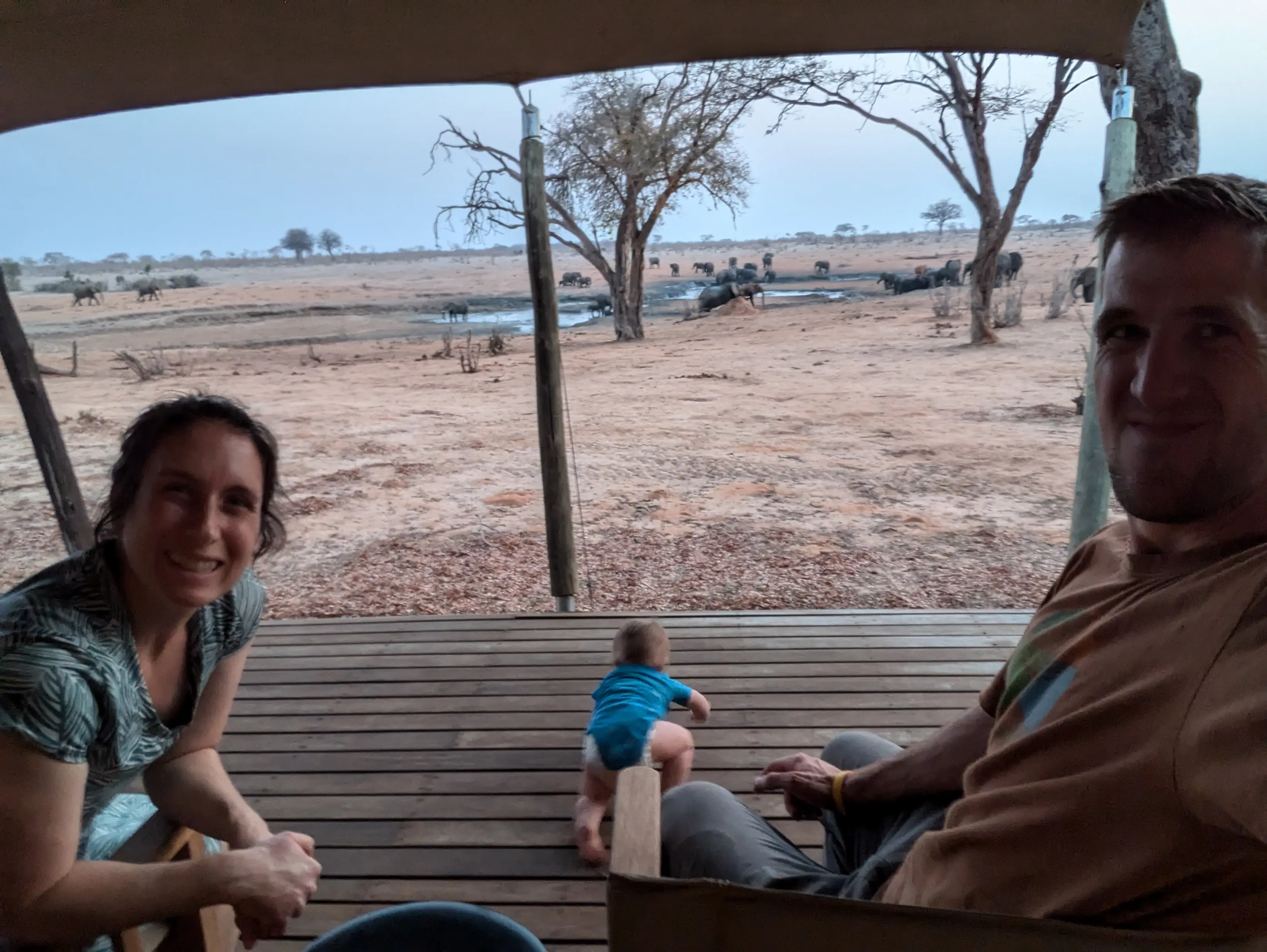 The camp was incredible and wild. There were no fences separating us from the wild animals and at night you had to be escorted to your tent by an armed guard. There was a watering hole just 30 meters from the camp which attracted up to 100 elephants at one time. The camp also provided babysitting services so that Phil and I could go out and enjoy the game drives (thanks Chipo!)