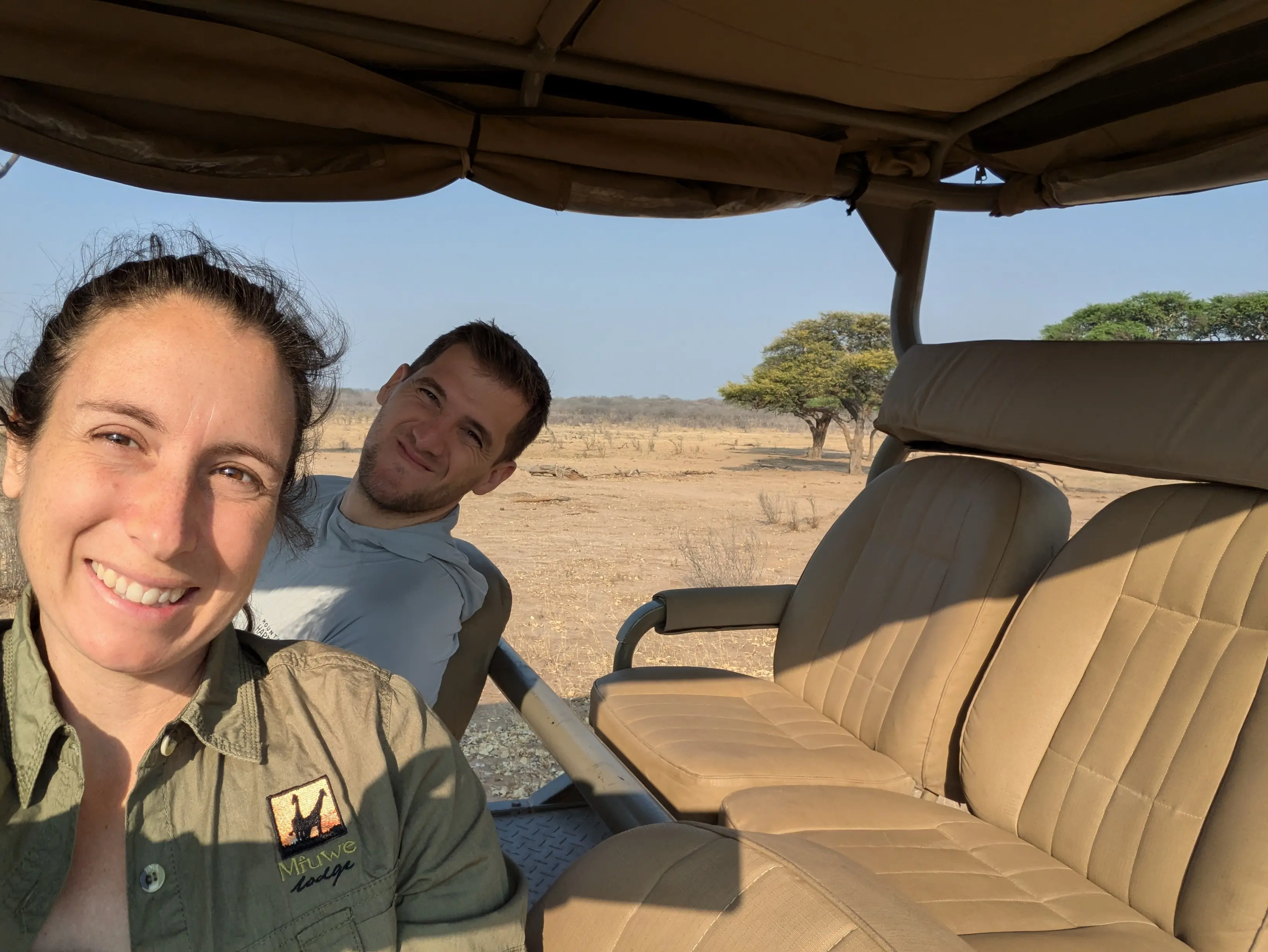 As the gravity of our situation started to sink in, we saw a safari car round the corner. We were saved! Two of the camp’s guides, Trust and Simon, rode in light knights in shining armor. The first thing they did was to bring out a cooler of cold drinks and hors d’oeuvres. What a change in circumstance! They loaded us and our luggage up and whisked us off to camp then later returned to tow our car the rest of the way.